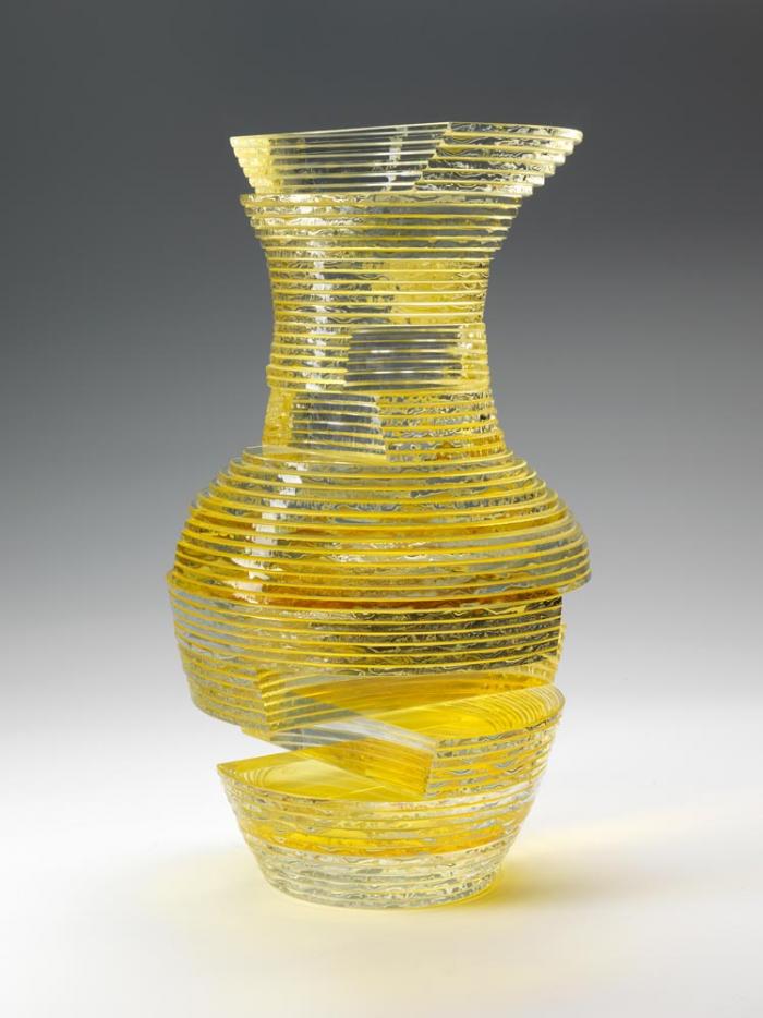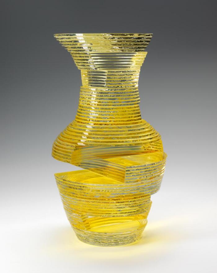Cut, ground polished, laminated 1/4' clear glass with dye in laminations