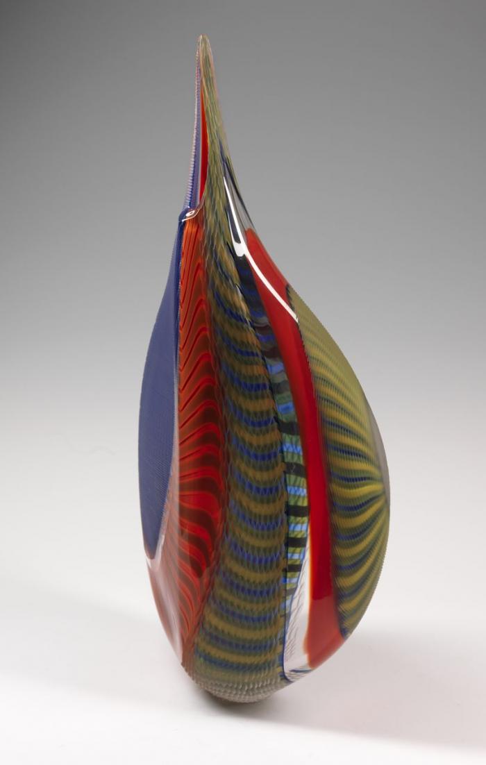 Carved blown glass vessel with glass canes