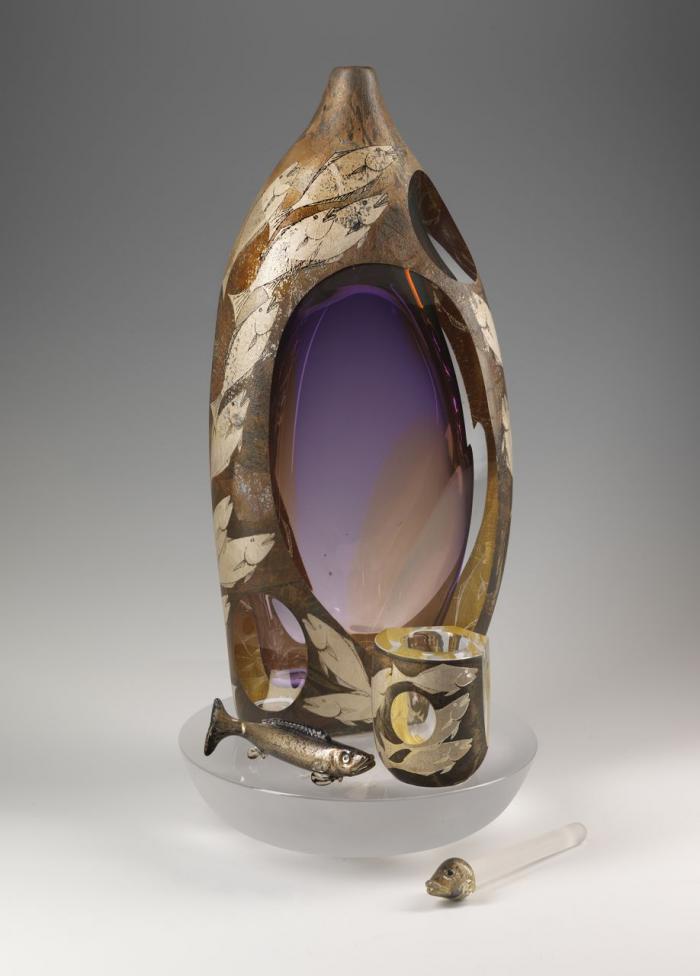 Blown Glass with Silver Leaf and Copper Electroplating