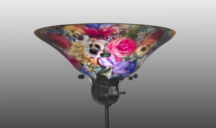 Hand-Forged Iron (Base), Reverse Painted Blown Glass (shade)