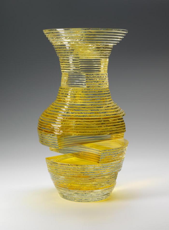 Cut, ground polished, laminated 1/4' clear glass with dye in laminations