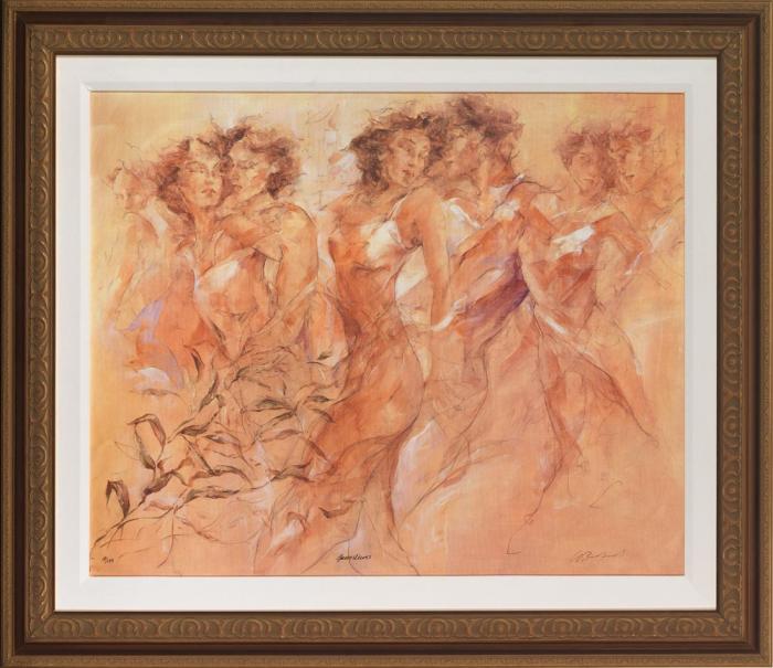 Seriolithograph in color on canvas with hand embellishment. Signed, titled and numbered in gold ink. From the numbered edition of 175. an edition of 950 on paper with out hand embellishment also exists.